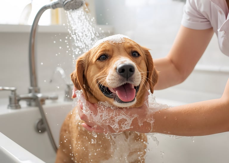 Use lukewarm water and a pet-safe shampoo (never human shampoo).